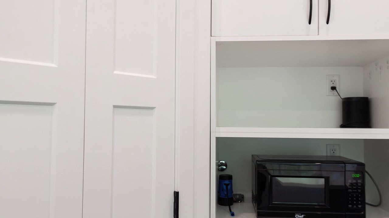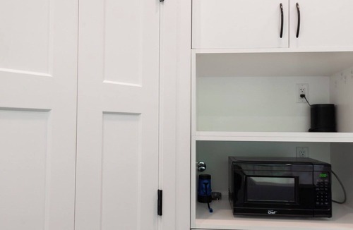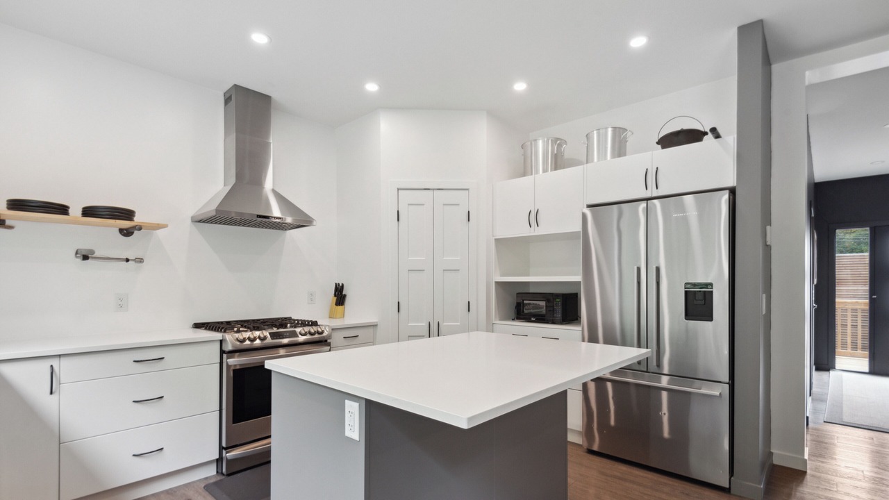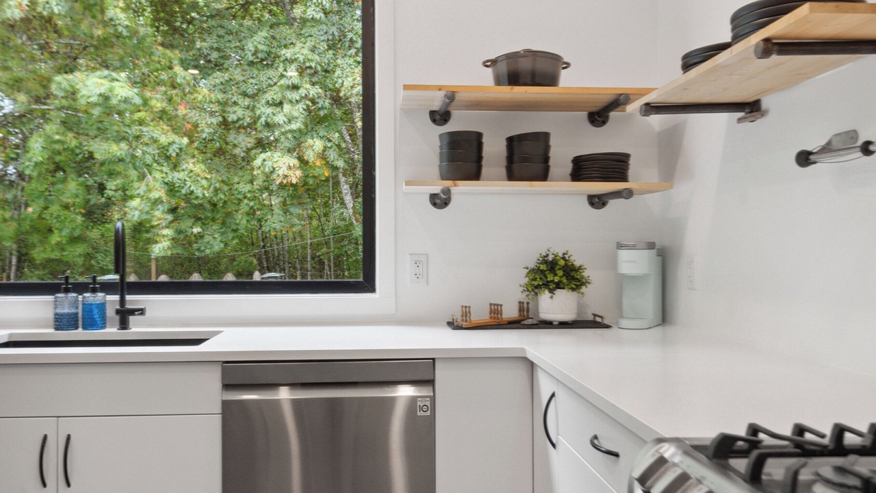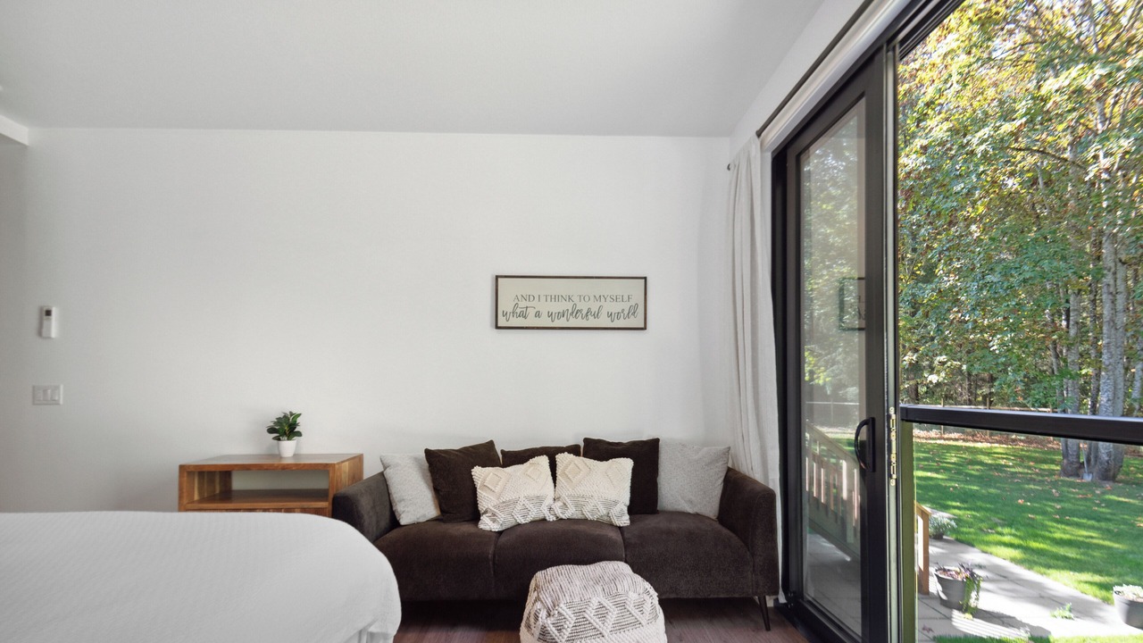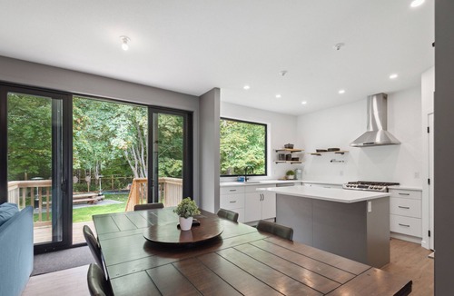 The River House is a stylish and comfortable simple layout that sleeps 8 guests in 4 bedrooms. We have the primary bedroom with a king sized bed and views of the backyard. The primary bedroom also has a full sized ensuite bathroom. We have two bedrooms each with their own tv and a queen bed. The fourth bedroom has two singles and a tv. There is a powder room in the entrance and another full bathroom down the hall. The fully loaded kitchen looks out over the backyard and is equipped with everything that you need to create a home cooked meal.