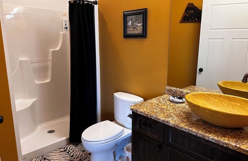 Entire guest suite in Campbell River, Canada. Accommodates up to 6 guests. 3 Bedrooms . 2 Bathrooms . Kitchenette . Full Laundry. Own entrance and parking. All rooms have Queen beds. Africa Room is on second level up 1 flight of stairs, with own bathroom and private balcony overlooking the ocean. On the entrance level (ground floor) we have the Canada Room with ocean view and Asia Room available for extra guests or children as also has bunk bed. Full bathroom and laundry facilities on ground floor. Also available outside is a barbecue. Wheelchair access.