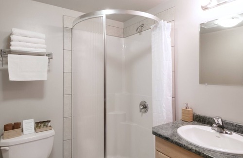 Our Queen and One Twin room accommodates three guests with one queen bed on the main level and one twin in the loft area. Equipped with a flat screen Eastlink TV and complimentary wireless Internet. Enjoy locally made bath products from Rocky Mountain Soap Co.
