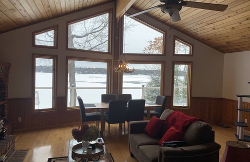 Beautiful lake view Cottage and loft located 1.5-2 hours from Toronto on White Lake. Our cottage offers all the joys of Canadian cottage life in the summer, fall and winter. Canoe, swimming, walking trails, beautiful fall colours and ice fishing. You will cherish the sunrise from your own personal dock and enjoy the starry nights with a fire pit. Indoor air hockey and mini pool table also available. The cottage is setup for remote working, professional desks, chairs, wifi. Pure calm location. Newly listed on Vrbo.