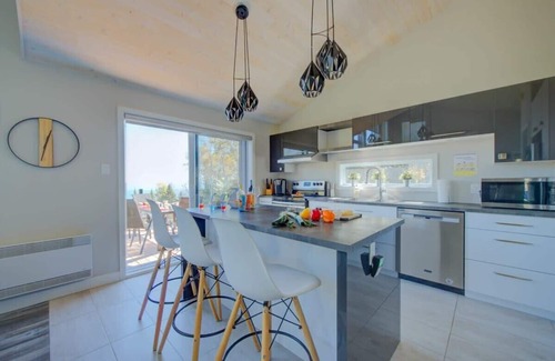 The residence is equipped with 4 bedrooms and 2 full bathrooms; 2 Queen beds, a bunk bed, a single bed and a double sofa bed. Several amenities will ensure you have a pleasant stay: air conditioning, high-speed WiFi for remote work, BBQ (May to November), indoor electric fireplace, HD smart TV with cable, washer-dryer, board games.