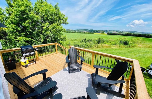 The master bedroom boasts stunning views of the farm fields and French River, featuring soft sheets, a cozy duvet, and blackout curtains to guarantee a restful night's sleep. The second bedroom accommodates guests with two single beds. The cottage is equipped with a fully stocked kitchen, perfect for those who wish to prepare their own meals.