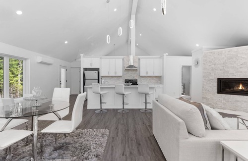 2 newly built cottages. The main cottage Is ultra luxurious with huge master bedroom with ensuite Roman soaker tub, shower gas fireplace sitting area walk in closet completely open concept 17 foot cielings windows everywhere full kitchen with center island secondary full bathroom and gas fireplace in main living area. Fully heated and air-conditioned