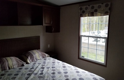 Updated, park model mobile home, with a Queen and a Full/Double bedrooms as well a full size pull out couch in livingroom and queen size pullout in our new 3 season room addition. Open concept kitchen, dining and living space with a large wrap around deck for seating and relaxing, BBQ for that outdoor cooking, and a firepit for evening campfire fun (supply your own firewood). Close te are eo horseshoe pits, heated swimming pools, and children's playground. Easy access to the beach, and boat launch. Laundry facilities within resort. A clubhouse with free WiFi. Includes kitchen needs for 8. You will need to supply your own beach and bath towels, bedding for queen and full size beds and full sized pullout, beach toys and rainy day games. Includes a TV with DVD player (bring your favorite movies). Nothing to do but to relax and enjoy family bonding time. Build a summer full of memories whether you stay in the resort or explore all that Muskoka has to offer.