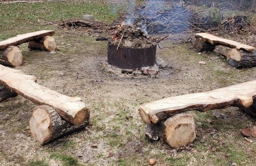 large docks, walking trails, firepit, wood fired sauna, horseshoe pit, boche ball and more