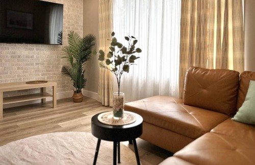 The heart of our suite is the welcoming living area, designed with relaxation in mind. Here, you can unwind, share stories, or plan your next day's adventures. The suite also boasts a fully equipped kitchen, allowing you to whip up meals with ease, complemented by a dining area where you can gather and enjoy your culinary creations.