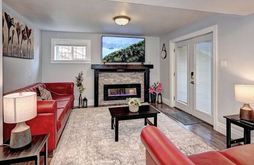 modern, completely private space. Four individuals can stay in this spacious walkout basement unit's (more than 1600 square feet). It features a stunning bedroom with a large comfortable couch and a luxurious King size bed for your usage. It also has a full closet and a 40" smart TV in the bedroom.
