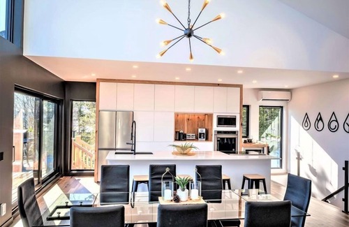 Nestled in Saint-Irénée, in the magnificent Charlevoix region, Villa Jeanne is a contemporary residence designed for lovers of nature, tranquility, and design. This bright home offers breathtaking views of the St. Lawrence River and comfortably accommodates up to 8 people.