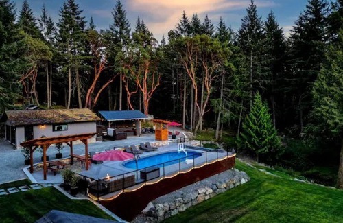Please read full description~ We offer a beautiful, private and peaceful oasis where you can Enjoy the sunny summer days by the HEATED POOL may-1 oct -1 or come visit us any season for the private Nordic-style spa experience. Heat up in the sauna then jump in the pool for a cold plunge or enjoy a tranquil heated/glacier cold outdoor shower, relax in the hot tub, then head to the steam shower for the finishing touch. Ask us about the cabin for the 4 th bedroom. Please read the full description for all the information. **we also offer 65% monthly discounts for Oct,nov,Jan,Feb,