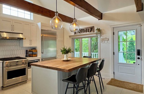 The inviting interior features five cozy bedrooms, two bathrooms with showers, a full laundry room, a large, fully equipped kitchen with a large center island, two living rooms with fireplaces, and a spacious dining room that can accommodate up to 16 guests. Offering over 60 amenities, this upscale property combines rural tranquility with urban proximity, for an experience that's as memorable as it is comfortable.