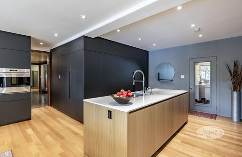 Enjoy the lake view through the full wall of windows. The eat-in kitchen offers banquet seating around the kitchen table, plus 5 chairs. Plenty of room for multiple cooks, 2 large islands, with bar seating for 4. Sub-zero fridge and freezer, hidden pantry, wolf gas stove, wolf wall oven, microwave and induction oven. Bosch dishwasher x2, mini fridge at the Miele coffee station. Quick and easy access to the direct gas line BBQ.