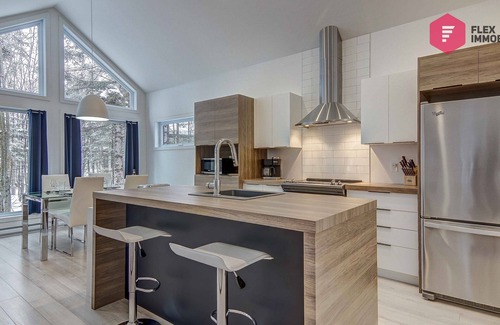 Whether you are relaxing in the living room by the fireplace or around the large kitchen counter with your guests, you can appreciate the natural beauty offered by the VERRRRRRY generous windows, all in height. Moreover, no stairs in the house and air conditioning for more comfort... ! A decor that inspires relaxation... a beautiful energy :)
