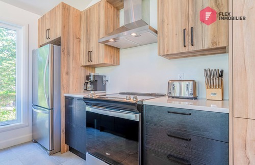 - Well-equipped kitchen with DISHWASHER, hybrid Keurig and filter coffee machine, fondue pot... and plenty of work space for cooking on the luxurious quartz countertop