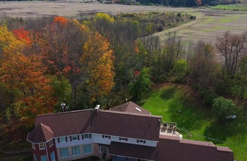 Ideal for yoga and meditation in the 500+ feet Sunroom full of French Windows + skylights surrounded by a forest; enjoy the sunshine and sunset before the bay window; have a family concert with the baby grand piano and karaoke; smell the scent of nature at the front porch; explore the 10 acres parcel garden and maple forest; host a pool party and stargaze along campfire with friends at summer time.