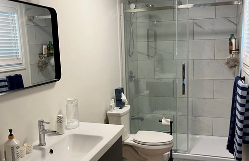 Stay connected with Wi-Fi throughout the cottage, and take advantage of the two desks if you need to get some work done in a peaceful setting. For entertainment, there’s a large flat-screen TV and a spacious sectional sofa that doubles as a lounger for movie marathons or extra sleeping space for guests.