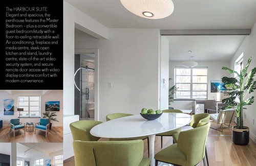 Iconic Art Deco landmark, the Residences at South Beach present the most exclusive and inspiring urban living spaces in the heart of Downtown St. John's. Architecturally detailed, sophisticated and fully-furnished luxurious penthouse suites. Walking distance to coffee shops, cafes, pubs, live music, theatre and fine dining restaurants. Open-concept Harbour and Duckworth Street facing living areas filled with natural light. Elegant and spacious. Master Bedroom plus convertible Bedroom / Study. Spa-inspired baths finished in Italian tile. Air conditioning, fireplace and media centre, sleek open Kitchen and island, laundry and state-of-the-art video security system and secure remote door access. Weekly rates available $245.00 per day. Please contact for more details.