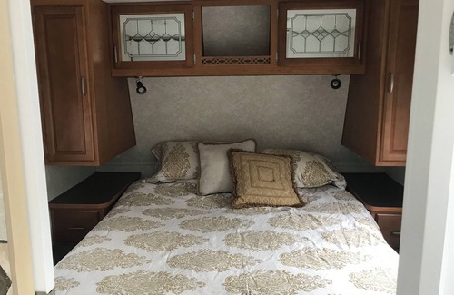 Minutes from the lake, this private spot is nestled in the heart of our vineyard. The trailer has been freshly renovated and is fully stocked with everything you need. The accommodation is ideal for four but can sleep 6 comfortably. A large and quiet outdoor space is provided to relax with your own fire pit and BBQ after a day of enjoying the Okanagan. Surrounded by mountain views and hidden in the vines, you can sip by the fire after exploring wineries or a day at the beach. This getaway is sure to melt away your worries.