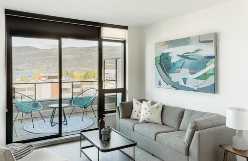 Enter into your beautiful new MODERN condo with views of mountains to the LAKE that utilizes every inch to include THREE beds & high-end furnishings. Located on the corner of Bernard, access to the best restaurants, shopping + City Park with the beach are within minutes. Wineries for wine lovers & golf courses for the golf enthusiasts surround your new condo. Key features are FREE parking, Air Conditioning, PRIVATE patio & access to the exclusive ROOFTOP terrace where BBQ is permitted.