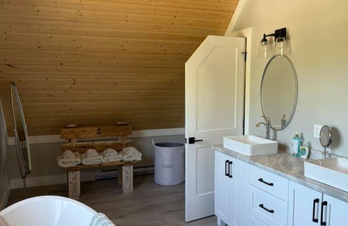 This lovely cottage in Shelburne offers a cozy retreat for guests. With 2 soothing bedrooms featuring a queen bed and 1 &1/2 tranquil bathrooms with a bathtub and hair dryer, this charming space is perfect for a relaxing getaway. Experience the magic of Shelburne at our cottage.