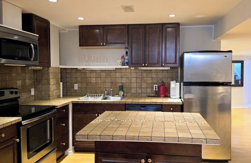Unwind in this bright, modern basement apartment designed for comfort and convenience. You'll have your own fully equipped kitchen, sleek bathroom, and a cozy living and dining area—ideal for solo travelers, couples, or business guests. The open-concept layout offers plenty of space to relax after a day out exploring.
