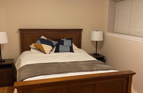 Spacious and bright, renovated 650 sq ft suite with full kitchen, queen bed and queen pull-out couch. Comfortable for 2, sleeps up to 4 guests. Private entrance. Close to food and amenities.
