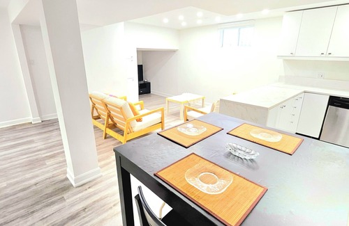 This stylish place to stay is perfect for group or family trips. Blending warm sophistication with modern design, this suite is the perfect home for business or leisure travellers and even families. Featuring all the amenities of a deluxe, fully furnished 2-bedroom suite. Enjoy your stay in this sophisticated amazing basement apartment; Wifi, free parking, & ensuite laundry. The house itself is surrounded by many restaurants and is walking distance to groceries. 10 min to subway station by bus.