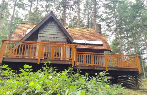 The Hobbit House is a special little space nestled on a forested acreage at the end of a country road on the edge of community forest trails - private and serene. A trail leads to the beach access where you can swim. picnic and watch the sun set or rise looking out towards the North Shore mountains of Vancouver. An ideal getaway for a couple or 2 - very private ! There is a separate workspace /cottage for those who are on a working holiday but we do hope you will just relax and enjoy!