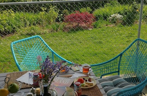 The spacious suite features a large living room and dining room, 2 large bedrooms (with a King, Queen-sized bed and a daybed), a spacious new kitchen with quartz countertops, stainless steel appliances, Keurig and drip coffee makers, a new bathroom, a 50" Sharp 1080p HD Smart TV with HD Cable(Shaw), Netflix(unlimited movies) and Roku (hundreds of streaming channels), washer/dryer, high speed Wi-Fi Internet, as well as a private covered patio. The self-contained suite is well insulated for quiet enjoyment, has a private entrance with parking and a large, exclusive patio with barbeque and plenty of patio/beach furniture to help maximize your outdoor comfort.