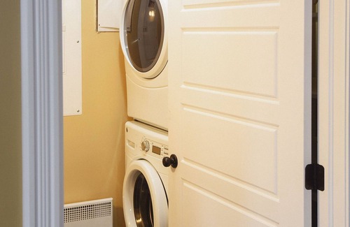 This 1500 sq ft apartment features a full kitchen (all dishes, glasses, pot & pans, etc. are included) with a large walk in pantry, living room with a smart TV, two large bedrooms with queen beds (one with a large walk in closet and another large closet), 1.5 bathrooms and a deck overlooking the trees.