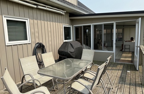 Great lake views from 2 story vacation home on the marina channel in Turkey Point. Sleeps 8. 3 bedrooms (queen bed, queen bed, queen bed + single bed, extra single floor mattress) and 2 full bathrooms. Fully equipped kitchen. Outdoor propane BBQ and fire-pit. Gorgeous sun room. Channel location with new sturdy dock; stunning sunsets out back. Lake access across street and very short walk to sandy beaches. Lots to do in the area - boating, fishing, hiking, biking, wineries, breweries, zip lining, and more - all very close by. Cozy winter retreat with wood-burning fireplace.