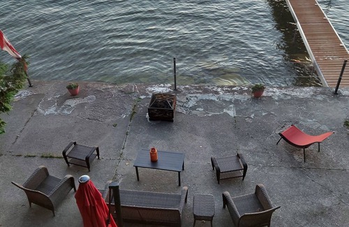 Two story boathouse that sleeps 4 to 5 comfortably , complete with downstairs king size bed , bathroom and fireplace. The upper part can be accessed from outside or up the spiral staircase. The upstairs has a living area with two coaches, tv, bunkbed with a double and single mattress and a small kitchenette complete with two small fridges. Use of all three decks, upper, middle and bottom and a 50 foot dock while renting the the boathouse. Water accessories like canoe, paddles, paddleboat, floaties are also provided. There is also an outdoor gas BBQ complete with propane , outdoor lounge furniture on all three decks and firepit complete with firewood. If you want to bring your jet ski, there is a jet ski lift available to park overnight and boat launches located in town or over at the marina. At the time of the rental the owner main be up for the weekend staying in the cottage only , but will not access the decks or docks while the boathouse is being rented. If you are interested in the full cottage and boathouse rates can be provided for both . I have made some small changes allowing for more cloths storage , second fridge and spider spraying will be applied three times this summer. I have made the little corrections to help make everyone's stay even more enjoyable.