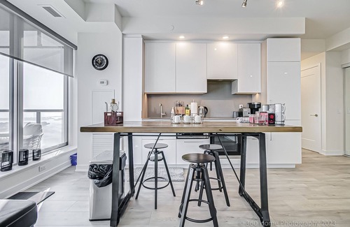 Indulge in luxury living at this new waterfront condo, complete with a modern gym for staying fit and a dedicated work-from-home setup with a desk, monitor and chair. Enjoy your morning coffee with breathtaking views of Lake Ontario from the 9ft floor-to-ceiling windows. Netflix and chill with the 65 inch smart TV and your favorite live channels and movies. Conveniently located just steps away from top downtown attractions, the unit also comes with private underground parking and quick and easy access to the highway. Rest easy knowing the unit is professionally cleaned after every guest.